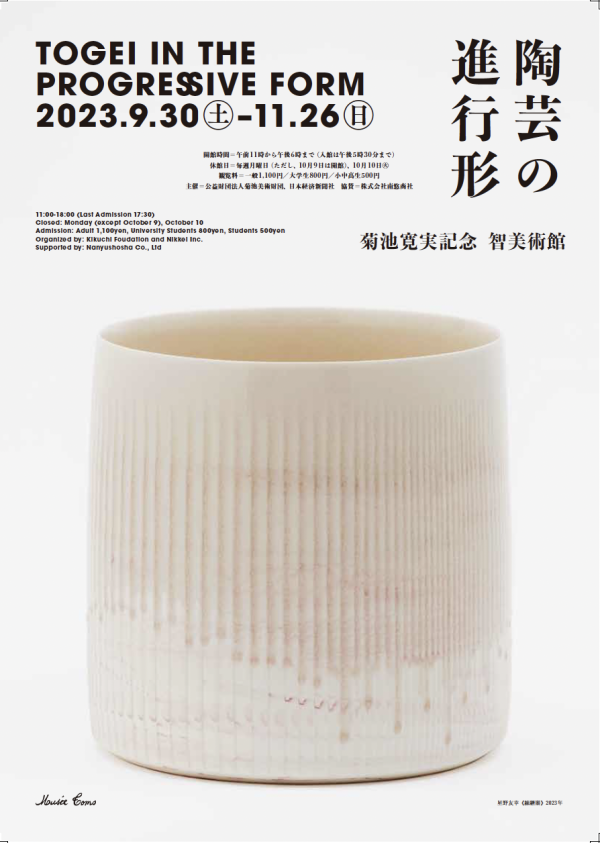 菊池寛実記念 智美術館で、展示会「陶芸の進行形」が2023年9月30日から開催される。これは、今年で10回目の開催が予定されている陶芸の公募展「菊池ビエンナーレ」(主催:菊池美術財団)を記念する展覧会だ。過去に受賞や入選歴のある25名の作家たちをセレクトし、彼らの今を紹介しながら、現在進行形の陶芸作品が展示される。北は北海道から南はシンガポールまで、様々な地域や風土にゆかりを持つ作家たちの個性豊かな作品が見どころとなる。